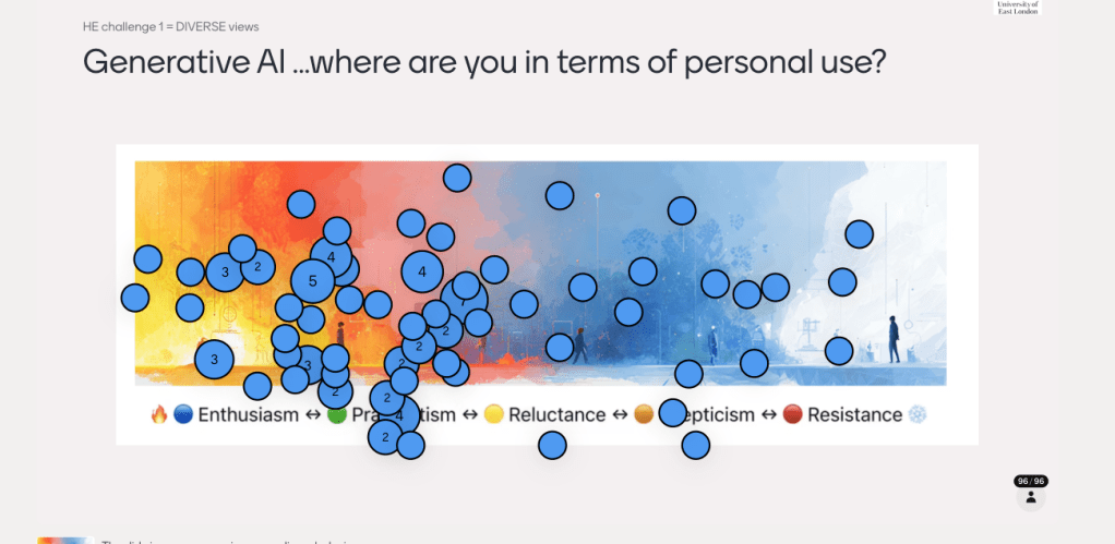 At the same time Universities are immersed in the dystopian narratives in which AI poses an existential threat to the values of education. A good example is the issues of academic integrity in the age of AI. The feeling that AI poses a threat to the integrity of education – to authenticity and ethics. I’ve lost count of the amount of times I have been told how urgent it is that we get AI detecting software for written assignments. Or how often I have hear people talk about how important it is to develop assessments where AI simply can’t be used.