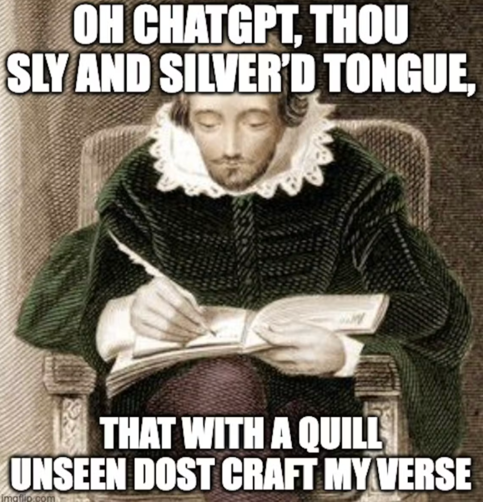 My daughter (aged 13) suggested this one. How teachers view ChatGPT output: homogenised, overly polished essays lacking individuality. My daughter used the ‘who will be the next contestant on ‘The Bachelor’ (some reality show I am told) image to illustrate how teachers confidently claim they can spot AI-generated assignments because “they all look the same.” My point: I think this highlights early scepticism about AI-produced writing but that we should as educators consider the extent to which these tools have evolved beyond initial assumptions and remind our students (and ourselves) that imperfections and quirks can define a style. Just ask anyone reading one of my metaphor-stretched, overly complex sentences. Perhaps, for too long we have over-valued grammatical accuracy and formulaic writing?